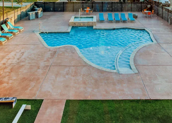 Las habitaciones son un refugio de confort, ya que cada una cuenta con moderna tecnología como un televisor de pantalla plana, conexión Wi-Fi gratuita y un mini-refrigerador. Además, disponen de cafetera, escritorio y, por supuesto, un baño privado equipado con artículos de tocador de cortesía y secador de pelo. Para aquellos que buscan un poco de diversión, la piscina exterior con forma de Texas ofrece un lugar ideal para refrescarse durante los días cálidos.
